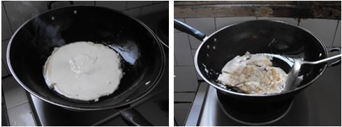 實(shí)驗(yàn)者將調(diào)好的面糊倒入平底鍋,適當(dāng)加熱后,翻邊。筆者發(fā)現(xiàn)鍋?zhàn)又行牟课坏氖軣岷芫鶆,煎餅中間沒有部分燒焦部分夾生的現(xiàn)象產(chǎn)生。 第三,聚能圈設(shè)計(jì),廢氣更少