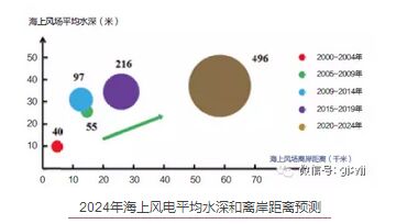 海上風(fēng)電市場(chǎng)的重心將從淺水區(qū)向深水區(qū)轉(zhuǎn)移,機(jī)組容量大型化成發(fā)展趨勢(shì) 2014年,全球90%以上的海上風(fēng)機(jī)安裝在灘涂區(qū)或淺水區(qū)域,按照國(guó)際慣例,海上風(fēng)電場(chǎng)以內(nèi)及主風(fēng)向的上下游數(shù)百米至上千米的范圍內(nèi)通常不適宜建設(shè)大型結(jié)構(gòu),并且風(fēng)機(jī)設(shè)施附近禁止拖網(wǎng)漁業(yè)等捕撈活動(dòng),這就大大影響了海洋區(qū)域的規(guī)劃。隨著海上風(fēng)電場(chǎng)規(guī)模越來(lái)越大,項(xiàng)目數(shù)量不斷增加,將對(duì)全球近海海域的生態(tài)環(huán)境、經(jīng)濟(jì)建設(shè)、海上旅游等造成較大影響。未來(lái)隨著潮間帶及近海資源被瓜分殆盡,全球海上風(fēng)電將不可避免地走向深海,越來(lái)越多的海上風(fēng)電場(chǎng)將選擇深水離岸式布局,2014年全球海上風(fēng)電場(chǎng)平均水深為22米,預(yù)計(jì)2024年將達(dá)到41米。