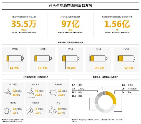 薩克森•安哈特州是德國(guó)能源轉(zhuǎn)型的先鋒州,可再生能源發(fā)電量在總發(fā)電量中占比51%。在這里,到處可以看到風(fēng)力、太陽(yáng)能發(fā)電和生物質(zhì)發(fā)電的使用和工廠。 馬格德堡市生物質(zhì)熱處理發(fā)電廠是一家以廢舊木材為原料的發(fā)電廠,每天可以為4000家住戶提供電量,為6000戶人家供暖,據(jù)其負(fù)責(zé)人ThomasPiesche介紹,雖然他們的發(fā)電成本遠(yuǎn)遠(yuǎn)高于傳統(tǒng)發(fā)電模式,但政府會(huì)以高于市場(chǎng)6倍的價(jià)格收購(gòu)他們的電量,以支持他們這種原材料循環(huán)使用的發(fā)電模式。 馬格德堡的漢瑟碼頭被稱為綠色港口,從2011年開(kāi)始,整個(gè)港口的項(xiàng)目都以風(fēng)力發(fā)電設(shè)施為技術(shù),幾乎所有動(dòng)力都是通過(guò)綠色能源來(lái)實(shí)現(xiàn)。如果有大型集裝箱船?扛劭冢话闶峭ㄟ^(guò)柴油發(fā)電,不可避免會(huì)造成對(duì)水質(zhì)的污染,但在這里,是通過(guò)港口內(nèi)部的風(fēng)力發(fā)電來(lái)供給,給來(lái)往的船舶免費(fèi)充電。港口內(nèi)部的電力系統(tǒng),混合電力火車,都是通過(guò)清潔能源來(lái)供電。這雖然增加了很多成本,但德國(guó)政府認(rèn)為,漢瑟綠色港口項(xiàng)目應(yīng)該是德國(guó)所有港口的榜樣。 近年來(lái),德國(guó)可再生能源生產(chǎn)不斷增加。去年夏天,德國(guó)通過(guò)三部關(guān)于可再生能源的新法,德國(guó)能源署首席執(zhí)行官安德里亞斯•庫(kù)曼認(rèn)為,這將催生巨大商機(jī)。 這三部重要的能源法包括《能源轉(zhuǎn)型數(shù)字化法案》、《2017年可再生能源法案》和《電力市場(chǎng)法案》。德國(guó)已制定目標(biāo),將于2022年之前逐步退出核能。近年來(lái),德國(guó)可再生能源產(chǎn)業(yè),尤其是風(fēng)電場(chǎng)和太陽(yáng)能電站發(fā)展顯著。 瑞士軟件公司Enersis首席執(zhí)行官克里斯提娜•伍特納預(yù)計(jì)德國(guó)能源政策轉(zhuǎn)型將掀起一場(chǎng)革命,徹底改變電力生產(chǎn)、配送和消費(fèi)模式。為抓住改革契機(jī),該公司去年在德國(guó)柏林成立了分公司!稗D(zhuǎn)型階段即將來(lái)臨,可為我們提供巨大機(jī)遇。”伍特納說(shuō)道。