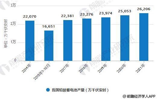 蓄電池產(chǎn)品歷史悠久,技術(shù)成熟,在功率特性、高低溫性能、組合一致性、回收再利用和價(jià)格等方面具有優(yōu)勢。所以,在短期內(nèi),蓄電池尚不能被其他電池產(chǎn)品所取代。 蓄電池行業(yè)發(fā)展現(xiàn)狀分析 隨著清潔化生產(chǎn)的推行,以及中國蓄電池行業(yè)的技術(shù)進(jìn)步和采用國際標(biāo)準(zhǔn)的進(jìn)程加速,近十年來,蓄電池產(chǎn)品的質(zhì)量水平也在不斷地提高。可以說,目前企業(yè)產(chǎn)品質(zhì)量水平的差異化正在逐漸縮小,產(chǎn)品質(zhì)量總體水平達(dá)到國際同類產(chǎn)品水平。但客觀而論,在質(zhì)量穩(wěn)定性、質(zhì)量一致性方面,我們與國際先進(jìn)工業(yè)國家的產(chǎn)品還存在較大差距。 中國蓄電池產(chǎn)量統(tǒng)計(jì)分析 據(jù)前瞻產(chǎn)業(yè)研究院發(fā)布的《鉛酸蓄電池行業(yè)市場前瞻與投資戰(zhàn)略規(guī)劃分析報(bào)告》統(tǒng)計(jì)數(shù)據(jù)顯示,2014年,我國鉛酸蓄電池產(chǎn)量為22070萬千伏安時(shí)。2015年1-10月,我國鉛酸蓄電池產(chǎn)量為16651萬千伏安時(shí)。2017年我國鉛酸蓄電池產(chǎn)量將達(dá)到22381萬千伏安時(shí),預(yù)計(jì)2018年我國鉛酸蓄電池產(chǎn)量將達(dá)23276萬千伏安時(shí)。未來五年(2017-2021)年均復(fù)合增長率約為4.02%,預(yù)計(jì)到了2021年我國鉛酸蓄電池產(chǎn)量將達(dá)到26206萬千伏安時(shí)。
