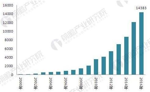 2000-2016年全球海上風(fēng)電裝機(jī)量統(tǒng)計情況