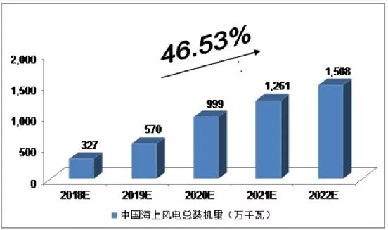 ▲中投顧問對2018-2022年中國海上風(fēng)電總裝機(jī)量預(yù)測(數(shù)據(jù)來源:中投顧問產(chǎn)業(yè)研究中心)