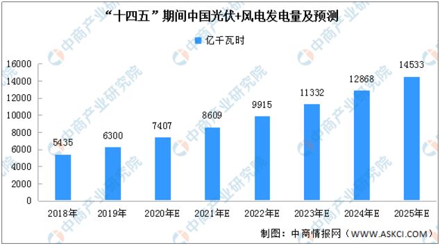 其中,光伏和風(fēng)電是目前大為發(fā)展的兩種清潔能源。光伏是太陽能光伏發(fā)電系統(tǒng)的簡稱,是一種利用太陽電池半導(dǎo)體材料的光伏效應(yīng),將太陽光輻射能直接轉(zhuǎn)換為電能的一種新型發(fā)電系統(tǒng),有獨立運行和并網(wǎng)運行兩種方式。而風(fēng)力發(fā)電是指把風(fēng)的動能轉(zhuǎn)為電能。 光伏和風(fēng)電都是清潔無公害的可再生能源,“十四五”期間將得到進(jìn)一步發(fā)展。預(yù)計2021年,光伏+風(fēng)電的發(fā)電量將超8600億千瓦時,到2025年將超14500億千瓦時。