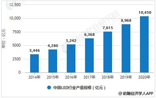 2014-2020年中國LED行業(yè)產(chǎn)值規(guī)模統(tǒng)計情況及預(yù)測
