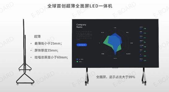 E-BOARD,全球首創(chuàng)超薄全面屏LED一體機(jī)于11月1日已正式上線,產(chǎn)品一經(jīng)發(fā)布,便引起廣大客戶的熱烈回應(yīng),為了讓更多的客戶了解我們?nèi)碌某∪嫫罫ED一體機(jī),科倫特于11月7日再次于抖音短視頻平臺進(jìn)行了一場線上發(fā)布會。 本次直播,主要針對科倫特自主研發(fā)的全球首創(chuàng)超薄全面屏LED一體機(jī)E-BOARD的功能詳細(xì)說明以及對客戶全面介紹,直播間共得到5000+的點(diǎn)贊,獲得了科倫特客戶一致好評! 那么,這么高人氣的一款產(chǎn)品,到底有什么吸睛之處呢?接下來,就為大家一一講解其誘人之處吧~ E-BOARD 全球首創(chuàng)超薄全面屏LED一體機(jī) 本系列新品總共有135吋、163吋、216吋三個尺寸,可滿足更多場景應(yīng)用,更有標(biāo)準(zhǔn)2K、4K高清顯示,為您提供更清晰的視覺體驗(yàn)。