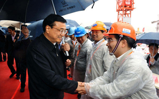 4月19日,中共中央政治局常委、國務(wù)院副總理李克強(qiáng)出席浙江三門核電一期工程開工儀式,宣布開工并看望工程建設(shè)者。這是李克強(qiáng)與工程建設(shè)者親切握手。李濤攝