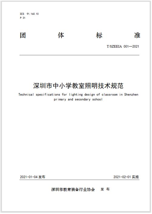 1月4日,深圳市教育裝備行業(yè)協(xié)會發(fā)布公告宣布《深圳市中小學(xué)教室照明技術(shù)規(guī)范》(T/SZEEIA 001——2021)團體標(biāo)準正式發(fā)布,將于2020年2月1日起實施。