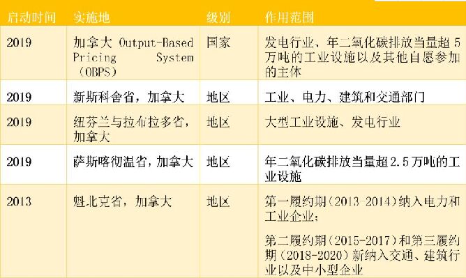 表1.加拿大現(xiàn)存碳市場統(tǒng)計