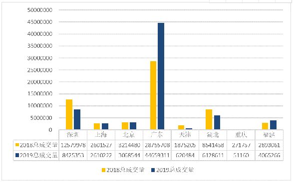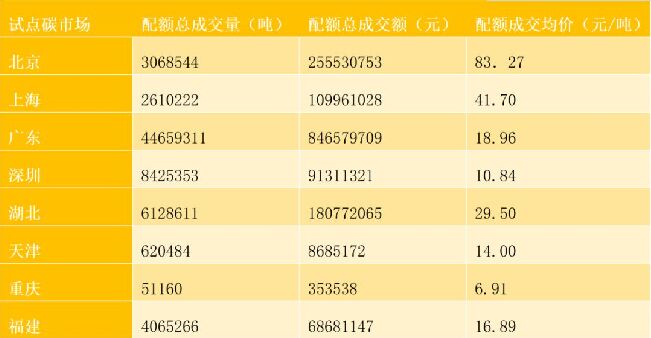 從各試點前后年度的成交數(shù)據(jù)對比來看,廣東碳市場在2019年比上一年度在成交總量和總額上均有了大幅提升,增長速度明顯快于其他試點。深圳碳市場2019年比上一年度有了明顯的交易額下滑,一方面是由交易總量下降導(dǎo)致,更大原因是配額的成交均價比2018年減少了一倍有余。其余碳市場兩年度成交情況差異不大,試點碳市場平穩(wěn)運行。