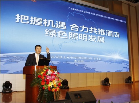 2013年3月16日,由國(guó)際酒店領(lǐng)袖機(jī)構(gòu)主辦,勤上光電承辦的廣東地區(qū)酒店行業(yè)總經(jīng)理春茗交流會(huì)暨中國(guó)酒店行業(yè)綠色照明及節(jié)能標(biāo)準(zhǔn)化建立論壇在東莞召開(kāi),來(lái)自國(guó)家標(biāo)準(zhǔn)化協(xié)會(huì)專(zhuān)家、照明設(shè)計(jì)專(zhuān)家、酒店業(yè)主等120人參加。論壇上,行業(yè)協(xié)會(huì)及聯(lián)盟組織發(fā)起《中國(guó)綠色酒店照明技術(shù)規(guī)范制定》啟動(dòng)儀式,勤上光電受邀參加該規(guī)范的制定。