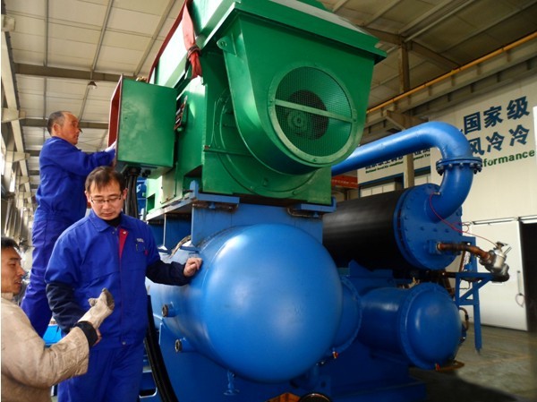 瀚藝首臺開啟式螺桿低溫冷水機(jī)組成功下線現(xiàn)場