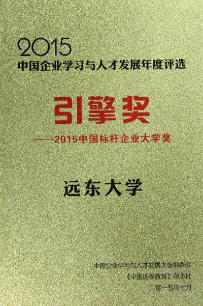 近日,“2015中國企業(yè)學習與人才發(fā)展大會暨(第四屆)中國企業(yè)大學年會”在北京舉行,知名專家、企業(yè)總裁、企業(yè)大學校長、HR部門精英、培訓中心高管及經理,遠程與繼續(xù)教育、職業(yè)教育、培訓機構負責人等約600人參會。在本次大會上,遠東控股集團遠東大學與中國電信學院、中國移動學院、招銀大學(招商銀行總部培訓中心)、新奧大學等一同榮獲“引擎獎——2015中國標桿企業(yè)大學獎”,遠東控股集團首席行政官、遠東大學執(zhí)行校長周東佼出席了此次會議并做分享。