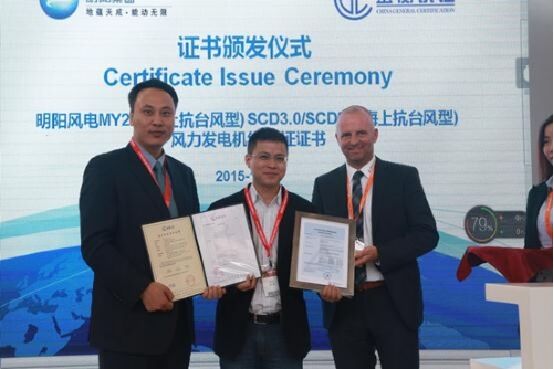 10月14日, 2015北京國際風能大會暨展覽會隆重開幕。展會首日,備受市場關注的明陽風電MY2.0-121風力發(fā)電機組榮獲由北京鑒衡認證中心與國際著名認證機構TUV-萊茵聯(lián)合頒發(fā)設計認證證書。這意味著,明陽風電正式開啟行業(yè)首創(chuàng)的一次認證、兩張證書的認證模式。 明陽風電自2010年推出MY1.5-89風機產(chǎn)品正式進入低風速市場以來,持續(xù)對低風速風機進行技術研發(fā)和創(chuàng)新,先后研制并成功向市場推出MY2.0-110、MY2.0-121等一系列低風速風機產(chǎn)品,并且在云南、貴州、山西、安徽、湖南、湖北等低風速地區(qū)得到廣泛運用。目前,由明陽風電供貨的已建成和建設中的低風速和超低風速風電場達70余個,裝機數(shù)量超過2000臺。 本次通過認證的明陽MY2.0-121風機,是目前全球范圍內2.0MW平臺葉輪直徑最大的風機。該款機型嚴格按照IEC61400-1、IEC61400-22等標準設計出品,在低風速和超級風速區(qū)域具有高發(fā)電量等強大的競爭優(yōu)勢。 明陽風電不僅加快低風速、超低風速機型開發(fā),而且以定制化設計理念滿足客戶的各種不同需求。按照風電場特有的風況特征、地形條件進行定制化設計,在當前風電場設計中對機組固有參數(shù)的輸入、既定基礎設計模式中引入差異化的設計,在風電場整體投資不增加的情況下提升發(fā)電量,實現(xiàn)風電場整體經(jīng)濟效益的提升。風機運行環(huán)境滿足海岸、潮間帶、低溫、超低溫、抗臺風、高海拔等不同區(qū)域要求,客戶群覆蓋五大發(fā)電集團和中廣核、三峽新能源、河北建投、中電建、神華等國內主要風電開發(fā)商。 同日,明陽風電在展位上舉行了“低風速風電場的選型及定制化設計”主題技術推介會,就明陽風電在低風速區(qū)域風電場的未來市場戰(zhàn)略、選型策略、低風速風機研發(fā)理念、風電場定制化設計及效能提升等整體解決方案向參展各方人士進行詳細介紹和說明。