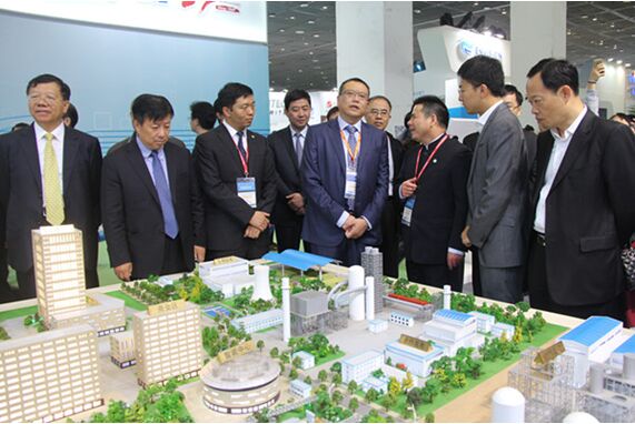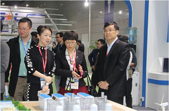 領(lǐng)導(dǎo)巡視遠(yuǎn)東智慧能源展臺(tái) 國(guó)家能源局新能源和可再生能源司副司長(zhǎng)朱明(中)聽(tīng)取 蔣錫培(右三)對(duì)智慧能源戰(zhàn)略規(guī)劃介紹