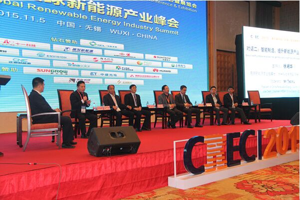 5日下午,大會(huì)組織了關(guān)于《智能制造,提升新能源產(chǎn)業(yè)質(zhì)量和效益》的對(duì)話環(huán)節(jié),無(wú)錫新能源商會(huì)理事長(zhǎng)、十一科技常務(wù)副院長(zhǎng)、華東區(qū)總裁徐湘華主持對(duì)話,蔣錫培與振發(fā)新能源科技發(fā)展有限公司副總裁張甲典;西安隆基硅材料有限公司董事長(zhǎng)鐘寶申;浙江正泰新能源開發(fā)有限公司總經(jīng)理仇展煒;華為智能光伏電站解決方案總經(jīng)理許映童;中盛集團(tuán)常務(wù)副總裁郭振海;上能電氣有限公司副總經(jīng)理李建飛七位企業(yè)家代表出席對(duì)話。