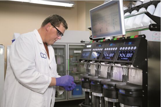 合成核酸鏈被用于基因研究中。寡核苷酸或核酸是由許多核苷酸聚合成的生物大分子化合物。作為全球基因合成領域的領導者,美國Integrated DNA Technologies(IDT)公司在基因合成生產(chǎn)定制寡核苷酸領域提供了廣泛合作和服務。IDT 公司利用先進的 M1 DNA 合成器提高其生產(chǎn)速度、精度,并提升了效率,該合成器采用了基于 PC 和 EtherCAT控制技術的TwinCAT 3自動化平臺。