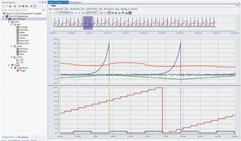 這兩個功能,即支持多核系統(tǒng)和繪圖庫,也可以提供用于 Scope Control 集成。Scope Control 集成指的是選擇將 Scope View 繪圖作為一個控件集成到一個定制的基于 .NET 的可視化系統(tǒng)中,如圖 5 中的 XY 和 YT 圖表。這不僅包括記錄期間數(shù)據(jù)的處理,而且還包括諸如縮放、平移、概述圖等控制功能。因此,客戶專用的可視化程序既不需要一個自定義的圖表工具,也不需要第三方工具,這樣可以大大減少工程的工作量。最終,用戶使用由倍福提供的標準產(chǎn)品的好處是創(chuàng)建一個配置和外觀完全可定制化的軟件示波器。