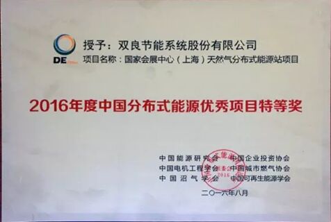 在剛剛結(jié)束的“2016中國分布式能源國際論壇”會議上,雙良憑借國家會展中心(上海)天然氣分布式能源站項目的成功運行,斬獲“2016年度分布式能源優(yōu)秀項目特等獎”的殊榮,實現(xiàn)了2014-2016年中國分布式能源優(yōu)秀項目特等獎三連冠。 中國分布式能源國際論壇于2016年8月17日-19日在滬召開,本屆論壇圍繞“分布式能源+互聯(lián)網(wǎng) 重塑能源供給新格局”的主題展開,雙良節(jié)能首席設(shè)計師張長江先生代表公司出席并發(fā)表了講話。他表示溴化鋰吸收式機組是冷熱電聯(lián)供系統(tǒng)的核心部件,其對煙氣的高效利用使得系統(tǒng)燃料利用效率高達80%以上。作為全球溴化鋰技術(shù)領(lǐng)航者,雙良30余年的溴化鋰吸收式技術(shù)研發(fā)和裝備制造經(jīng)驗,是系統(tǒng)穩(wěn)定、高效、低成本運行的有效保障。