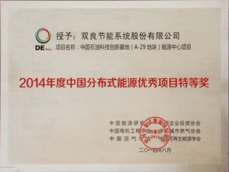 2014年:中石油昌平數(shù)據(jù)中心項目,國家首批分布式能源示范項目 榮獲2014年度中國分布式能源優(yōu)秀項目特等獎