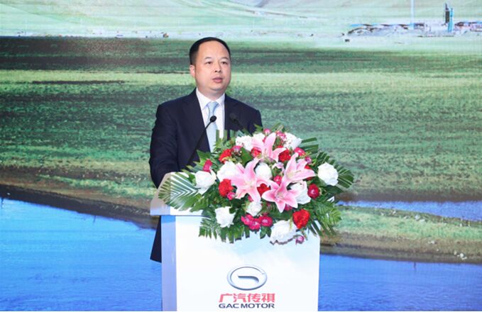 (廣汽集團(tuán)執(zhí)行委員會(huì)副主任、廣汽乘用車(chē)總經(jīng)理郁俊在啟動(dòng)儀式上致辭)