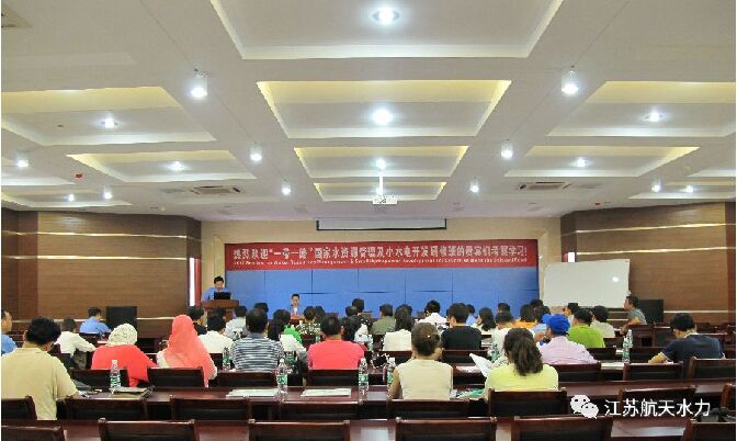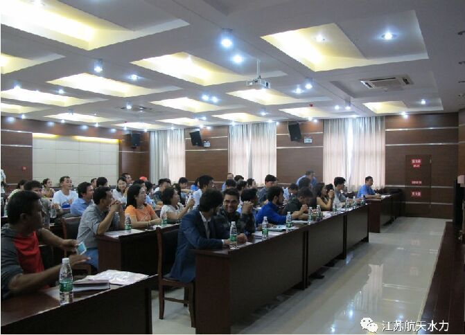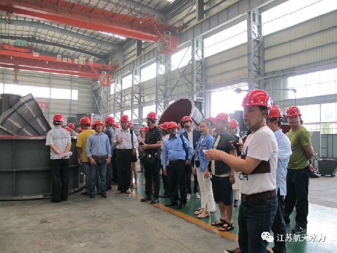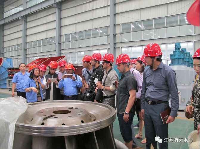 2017年6月30日,“一帶一路”國家水資源管理及小水電開發(fā)研修班的貴賓在水利部杭州農(nóng)電所領(lǐng)導(dǎo)的陪同下,到江蘇航天水力設(shè)備有限公司考察學(xué)習(xí)。此研修班為商務(wù)部援外項(xiàng)目,有來自朝鮮、阿塞拜疆、阿富汗、亞美尼亞、孟加拉國、尼泊爾、老撾、多米尼克、蒙古、伊朗、緬甸和埃及等十二個(gè)國家共四十四位能源領(lǐng)域的官員及技術(shù)人員。其公司黨委書記薛世寬、銷售副總邵春兵和市場總監(jiān)盧燈權(quán)及國際貿(mào)易部的員工一起參與接待。
