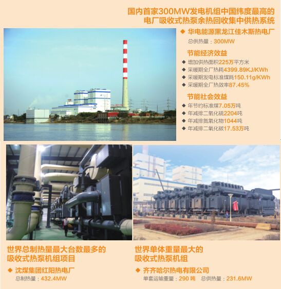 2009年開發(fā)全球首個吸收式熱泵余熱回收制熱系統(tǒng)用戶 有效解決火電廠冷凝熱排空問題 低成本解決大面積城市供熱 已有35家電廠使用該系統(tǒng)