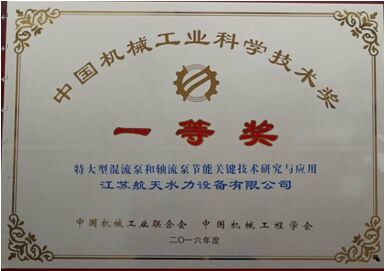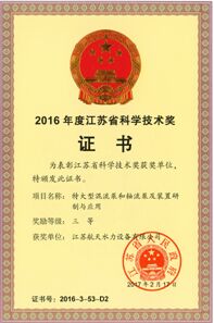 從江蘇省科技廳獲悉,江蘇航天水力設(shè)備有限公司申報(bào)的2016年江蘇省科學(xué)技術(shù)獎項(xiàng)目“特大型混流泵和軸流泵及裝置研制與應(yīng)用”榮獲江蘇省科學(xué)技術(shù)獎三等獎。