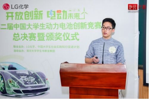 10月18日,由LG化學(xué)攜手“中國大學(xué)生社會實踐知行促進(jìn)計劃”(簡稱“知行計劃”)共同舉辦的“第二屆中國大學(xué)生動力電池創(chuàng)新競賽”總決賽暨頒獎儀式在清華大學(xué)舉行。