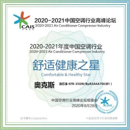 8月28日,由中國家用電器協(xié)會與國家信息中心信息化和產(chǎn)業(yè)發(fā)展部指導、中國家電網(wǎng)主辦的“2020-2021中國空調(diào)行業(yè)高峰論壇”在北京舉行,此次峰會以“新隨風動 格局誰塑”為主題,就行業(yè)未來發(fā)展趨勢進行探討和交流。奧克斯作為行業(yè)知名品牌受邀參與盛會,并憑借為消費者提供以健康舒適產(chǎn)品的理念,一舉斬獲“2020-2021年度空調(diào)行業(yè)智能健康倡導者品牌”,其旗下健康產(chǎn)品清芯凈機芯可拆洗空調(diào)更是榮獲“2020-2021年度空調(diào)行業(yè)舒適健康之星”。
