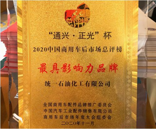 一年一度的2020中國(guó)商用車后市場(chǎng)年度大會(huì),近日在上海瑞立汽車城酒店舉辦。本屆大會(huì)以“洞見趨勢(shì) 順勢(shì)謀變”為主題,吸引了來自國(guó)內(nèi)商用車后市場(chǎng)全產(chǎn)業(yè)鏈的行業(yè)專家、領(lǐng)軍大咖、骨干企業(yè)代表等1500余人參加,深入探討商用車后市場(chǎng)發(fā)展機(jī)遇,開展技術(shù)交流和成果展示,推動(dòng)產(chǎn)業(yè)高質(zhì)量發(fā)展,被視為商用車后市場(chǎng)的風(fēng)向標(biāo)。在大會(huì)期間,統(tǒng)一潤(rùn)滑油憑借優(yōu)良的產(chǎn)品口碑與豐富的產(chǎn)品線一舉贏得了2020中國(guó)商用車后市場(chǎng)總評(píng)榜最具影響力品牌獎(jiǎng)。