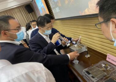 ∆現(xiàn)場(chǎng)領(lǐng)導(dǎo)及專家觀看烽火展示設(shè)備