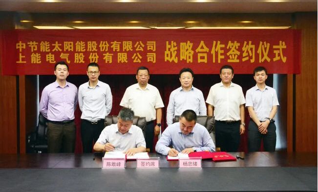 6月16日,上能電氣與中節(jié)能太陽(yáng)能在無(wú)錫簽署戰(zhàn)略合作協(xié)議,旨在相互促進(jìn)、共贏發(fā)展。中節(jié)能太陽(yáng)能股份有限公司黨委書記、董事長(zhǎng)曹華斌,副總經(jīng)理?xiàng)钪揖w,上能電氣股份有限公司董事長(zhǎng)吳強(qiáng)、常務(wù)副總裁陳敢峰等雙方領(lǐng)導(dǎo)共同出席了簽約儀式,并進(jìn)行友好會(huì)談。