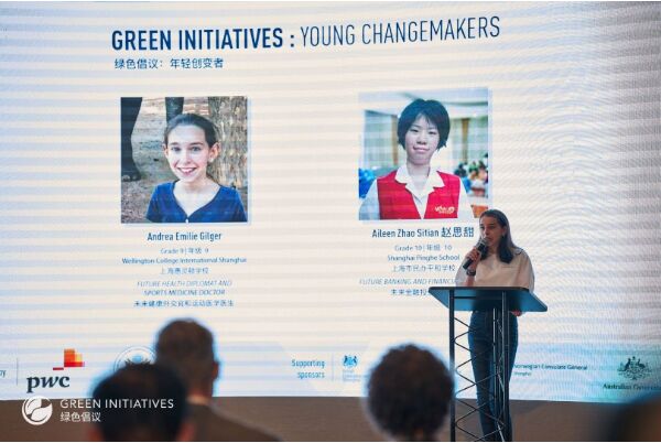 會(huì)議第二階段。綠色倡議的青年創(chuàng)變者項(xiàng)目邀請(qǐng)了來(lái)自上海惠靈頓學(xué)校九年級(jí)的Andrea Gilger, 和來(lái)自上海平和學(xué)校十年級(jí)的Aileen趙思甜,兩位少年環(huán)保先鋒,在第二階段的開場(chǎng)部分進(jìn)行了每人2分鐘的發(fā)言,充分展示了年輕一代對(duì)于氣候和環(huán)境問(wèn)題的關(guān)注和決心。