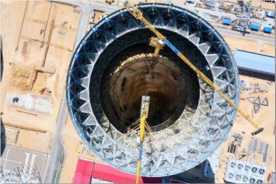 5月1日,勞動者的節(jié)日,內(nèi)蒙古鄂爾多斯草原上風(fēng)和日麗,這是特別值得慶祝的一天——在國家能源集團上海廟項目建設(shè)現(xiàn)場,由雙良冷卻公司EPC承建的#3鋼結(jié)構(gòu)間接空冷塔順利封頂。目前國能上海廟電廠二期間冷塔主體結(jié)構(gòu)工程總體進度已完成過半,#3機組間接空冷系統(tǒng)設(shè)備安裝完成后很快就將進入168試運行階段。
