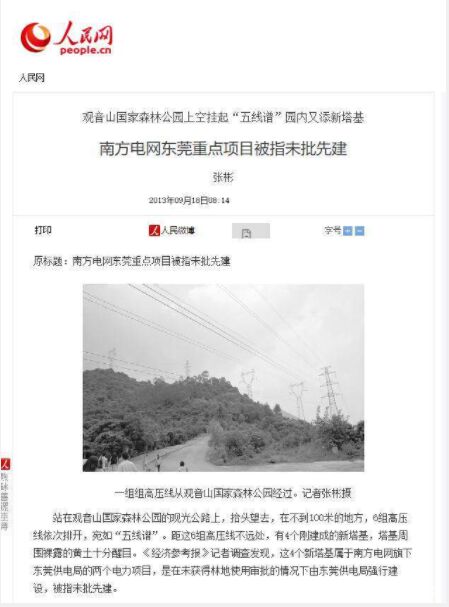 據(jù)了解,目前共有七組高壓線路,十余座高壓線塔穿行架設(shè)在觀音山景區(qū)內(nèi),輸電線路為“220千伏東莆甲乙線,110千伏古塘線,110千伏古清線,110千伏古裕線,110千伏古樟乙線,110千伏鹿窩輸變電配套線路,220千伏東莞-角布雙回送電線路工程”;其建設(shè)時間分別為:2002、2004、2005、2006、2007和2012年。