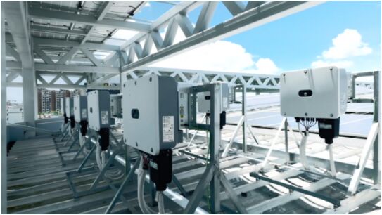 一是智能分布式光伏系統(tǒng)。通過在ABC三棟場館屋頂采用的智能優(yōu)化器組件鋪設的1.1MW光伏,可以實現(xiàn)每一塊組件獨立發(fā)電,提高了園區(qū)的建筑節(jié)能,而采用的AI智能電弧防護功能,消滅直流電弧火災隱患,智能化運維,進一步提高系統(tǒng)穩(wěn)定性,這也讓三棟場館每年發(fā)電每年生產(chǎn)綠電127萬度,等效植樹3.1萬棵。