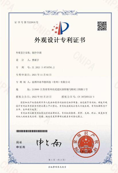 值得一提的是,泓博科技擁有經(jīng)驗(yàn)豐富的研發(fā)團(tuán)隊(duì)、專業(yè)的工程方案設(shè)計(jì)團(tuán)隊(duì),其研發(fā)設(shè)計(jì)的制冷空調(diào),榮獲國家外觀設(shè)計(jì)專利證書。
