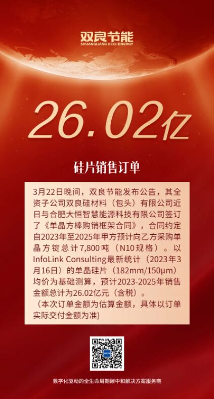 公司大尺寸單晶硅片產(chǎn)品市場(chǎng)開(kāi)拓順利,本合同的簽訂標(biāo)志著公司的大尺寸N型單晶硅相關(guān)產(chǎn)品獲得了下游優(yōu)質(zhì)客戶及市場(chǎng)的認(rèn)可,對(duì)公司N型單晶硅業(yè)務(wù)形成長(zhǎng)期穩(wěn)定的銷(xiāo)售有著積極影響。本合同履行期限為2023年至2025年,有利于提高公司本年度及未來(lái)公司N型單晶硅產(chǎn)品的銷(xiāo)售收入,并有利于穩(wěn)定經(jīng)營(yíng)現(xiàn)金流。