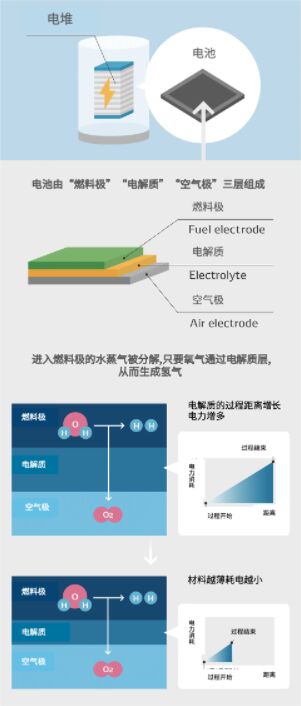 電裝同時還具備電池開發(fā)的技術(shù)優(yōu)勢。當(dāng)電池中發(fā)生反應(yīng)并且離子從燃料電極移動到空氣電極時,功耗會隨距離增加而增加。