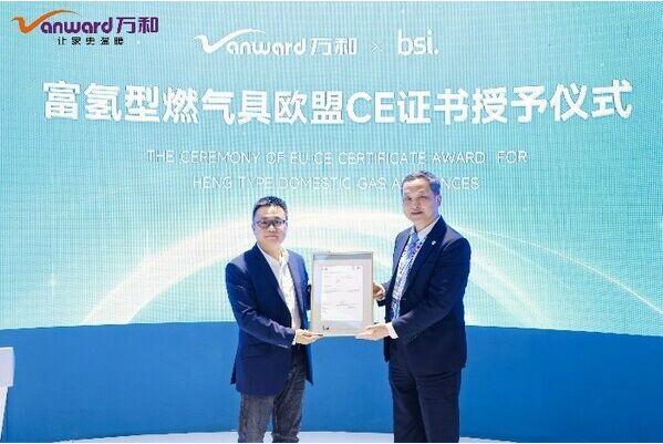 BSI 大中華區(qū)董事總經(jīng)理張翼翔隨后就雙方在氫能燃?xì)饩叻矫娴募夹g(shù)合作內(nèi)容做了分享,并現(xiàn)場為萬和電氣隆重頒發(fā)富氫燃?xì)饩弋a(chǎn)品 CE 證書。值得一提的是,這是BSI首次在國內(nèi)頒發(fā)富氫燃?xì)鉄崴鳟a(chǎn)品證書,萬和電氣也成為國內(nèi)第一家獲取該產(chǎn)品 CE 認(rèn)證的企業(yè),還意味萬和電氣燃?xì)饩攉@得了歐洲市場準(zhǔn)入,將有機(jī)會(huì)進(jìn)軍歐洲市場,在歐盟地區(qū)進(jìn)行銷售。