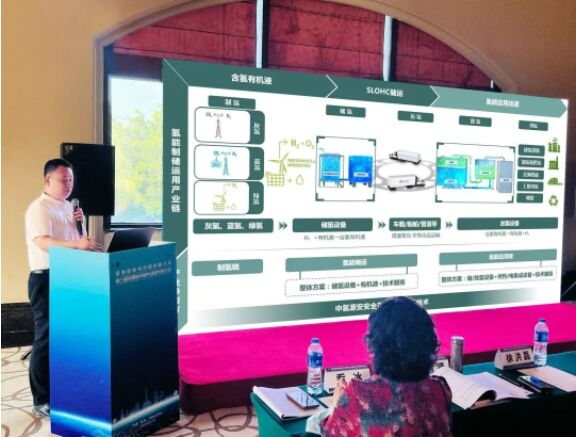 中氫源安聯(lián)合創(chuàng)始人、總裁朱成博士出席論壇,并發(fā)表了精彩的主題演講。他指出,盡管氫是宇宙中最常見的元素之一,但由于其活性極強(qiáng)和儲運(yùn)成本較高的因素,大規(guī)模應(yīng)用一直面臨挑戰(zhàn)。為此,中氫源安注重自主研發(fā)和技術(shù)創(chuàng)新,不斷深化研究并升級設(shè)備、產(chǎn)品及系統(tǒng),開發(fā)出適合大規(guī)模運(yùn)輸?shù)陌踩袡C(jī)液儲運(yùn)氫技術(shù),逐步開拓更多應(yīng)用場景。