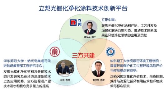 立邦中國(guó)攜手華東理工大學(xué)資源與環(huán)境工程學(xué)院及華東師范大學(xué)物理與電子科學(xué)學(xué)院,共同簽署“光催化凈化涂料技術(shù)創(chuàng)新平臺(tái)”戰(zhàn)略合作