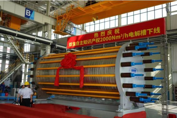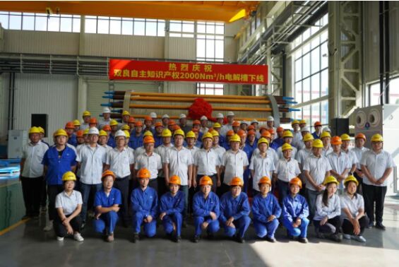 9月8日,在雙良綠電智能制氫裝備車間,自主知識(shí)產(chǎn)權(quán)2000Nm³/h電解槽成功下線,刷新了此前同產(chǎn)品的最大制氫量記錄,彰顯了雙良在大型電解槽系統(tǒng)設(shè)計(jì)與制造方面的實(shí)力,標(biāo)志著雙良?xì)淠墚a(chǎn)業(yè)向前再邁進(jìn)堅(jiān)實(shí)一步。