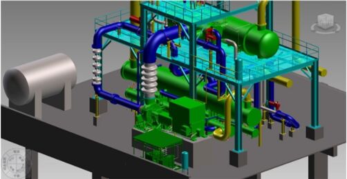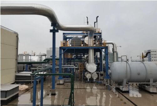 走進三房巷聚酯瓶片工廠,生產(chǎn)車間全線開通,各道工序有條不紊地運行著。ORC余熱發(fā)電裝置位于聚酯樓頂5層,分三層疊放布置,最小化占地面積。
