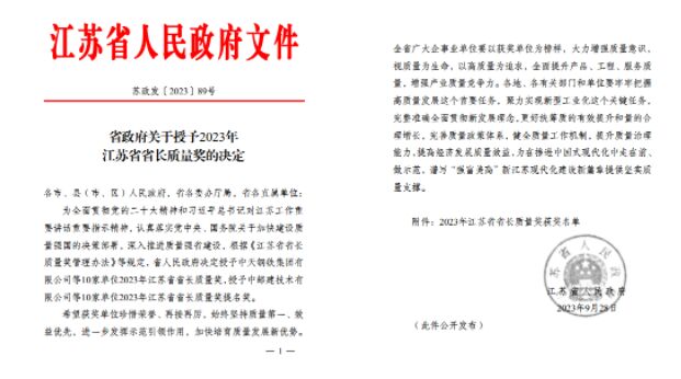 作為經(jīng)濟(jì)大省、制造業(yè)大省,江蘇歷來(lái)重視質(zhì)量強(qiáng)省建設(shè),發(fā)力打造的質(zhì)量和品牌綜合實(shí)力位居全國(guó)前列,江蘇省省長(zhǎng)質(zhì)量獎(jiǎng)是江蘇省政府設(shè)立的質(zhì)量領(lǐng)域最高獎(jiǎng)項(xiàng),包括“江蘇省省長(zhǎng)質(zhì)量獎(jiǎng)”和“江蘇省省長(zhǎng)質(zhì)量提名獎(jiǎng)”兩個(gè)獎(jiǎng)項(xiàng),主要授予全省范圍內(nèi)質(zhì)量管理模式先進(jìn)、成效卓越,體現(xiàn)標(biāo)桿引領(lǐng)作用的各類組織,每年評(píng)定一次,評(píng)定數(shù)量各不超過(guò)10個(gè)。
