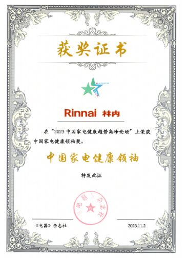 林內(nèi)榮獲本屆高峰論壇“中國家電健康領(lǐng)袖獎”