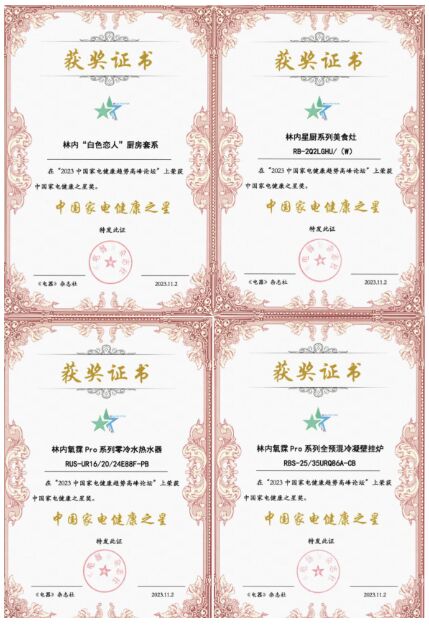 林內(nèi)榮獲采暖、熱水器和廚電領(lǐng)域的“中國家電健康之星”獎項