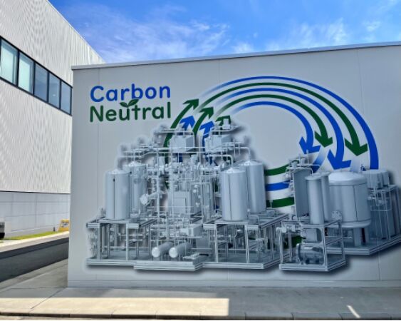 據(jù)介紹,安城制作所的CO₂循環(huán)設施由脫水器、CO₂回收器、氫氣生成器和甲烷化反應器組成。脫水器用于去除機器廢氣中所含的水分,CO₂回收器用于回收生產過程中產生的CO₂,氫氣生成器將所回收的H2O和CO₂合成氫氣,而甲烷化反應器則由CO₂和氫氣合成甲烷并將其供應給工廠的設備加熱所需。這一CO₂循環(huán)設施自2021年4月開始運行,旨在通過使用高效的CO₂甲烷化技術,回收工廠生產過程中所產生的CO₂,并將其循環(huán)利用于工廠的生產制造,助力安城制作所的碳中和實現(xiàn)。