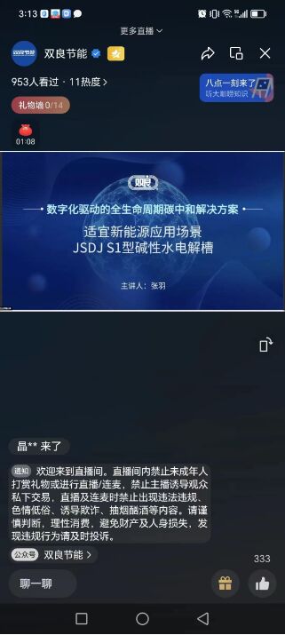 11月24日,雙良氫能源綠電智能制氫項目研發(fā)工程師張羽作為演講嘉賓,為大家分享《數(shù)字化驅(qū)動的全生命周期碳中和解決方案——適宜新能源應(yīng)用場景JSDJ S1型堿性水電解槽》主題講座。