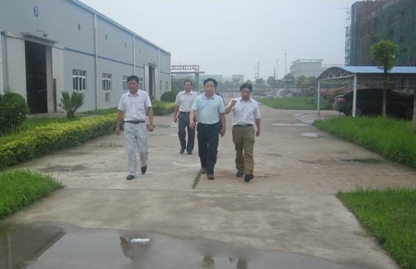 圖為松滋市發(fā)改局局長羅明雄(右二)、副局長張磊(左二)、李主任在營銷總監(jiān)文純陽的陪同下參觀大明燈業(yè)生產基地。